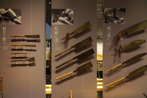 Kanna 鉋 – The Japanese plane consists of a wooden block called the dai (台) which contains a securing pin, a laminated blade, and a sub-blade. The blade is commonly fixed in position, usually near the plane’s abutments on the side of the block. Unlike western planes, the Kanna features a convex support bed for its blade. The blade itself is made in such a way that it is wedged tightly into the block when tapped. They achieve this by tapering the blade’s thickness. A different type of plane, called the yarigana is used primarily for large, circular columns, and is built with a single piece of metal. Constructing the Kanna and the yarigana in this way gives carpenters a uniform rate of shaving. The Kanna also uses a pulling action rather than a pushing one, providing the carpenter with more power and control.